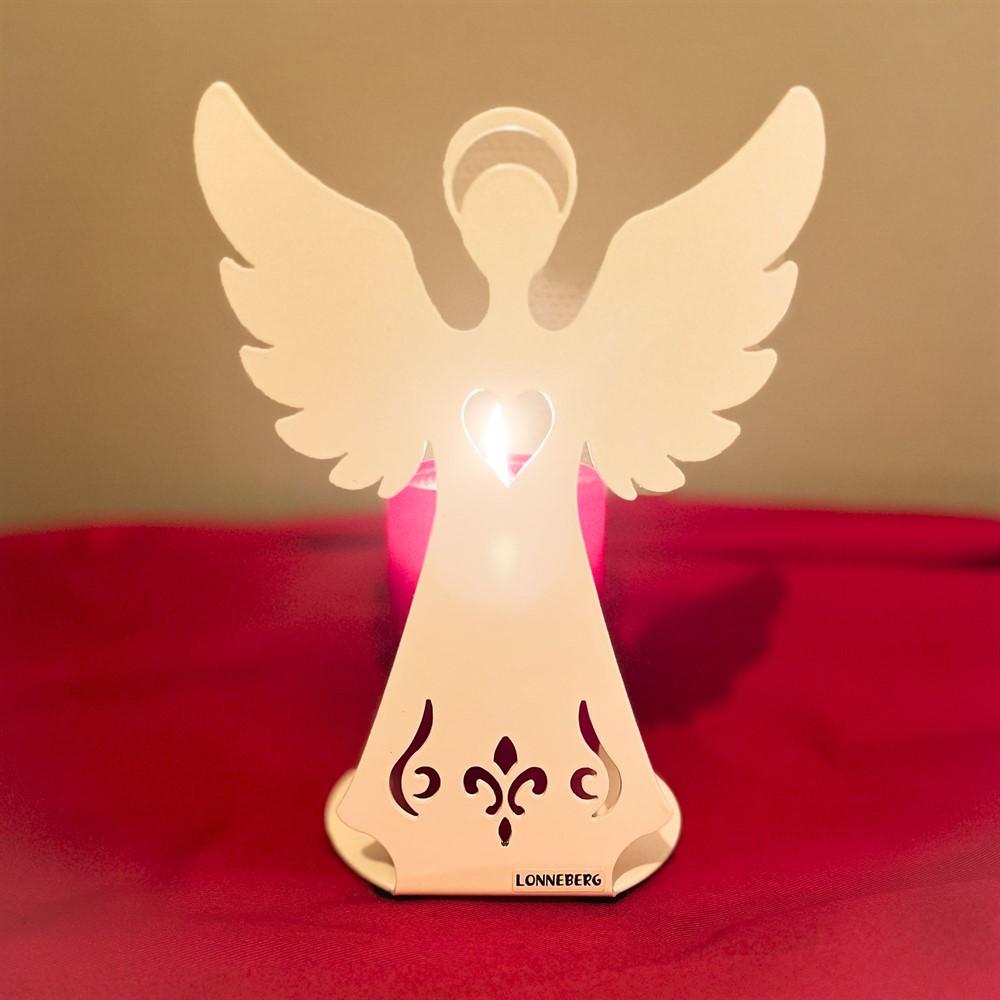 Our angel with a candle plate is a gentle and atmospheric decoration that can be turned in two directions depending on the type of candle you use. When the candle is lit a beautiful shadow appears on the wall, highlighting the angel’s shape and creating a lively impression.