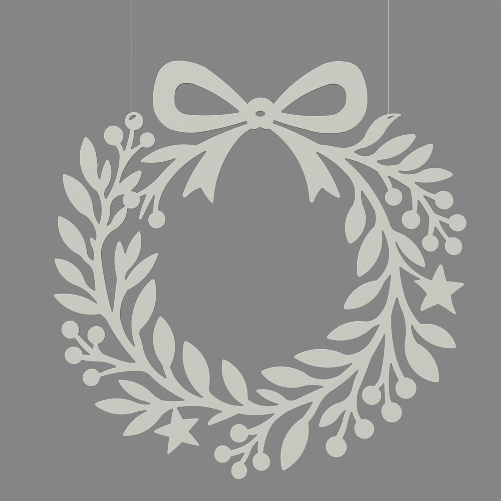 Med två urtag och medföljande 2 st 1,5 m rostfri skylttråd hänger kransen stadigt utan att snurra. Den kan enkelt fästas på flera sätt: