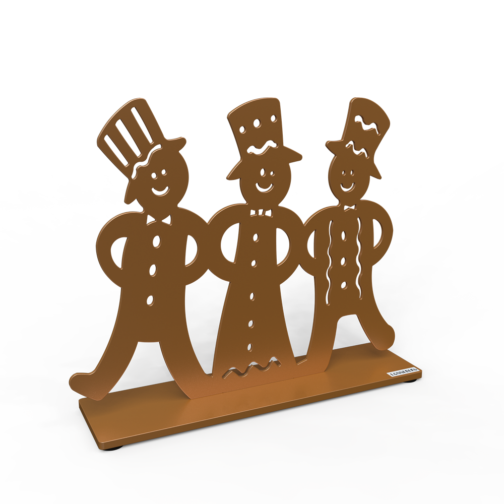 Tillverkad i brun umbra metall, en nyans som för tankarna till klassiska pepparkakor. En hållbar och underhållsfri juldekoration som sprider värme och glädje hos både stora och små.